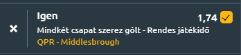 - Hiába van a két csapat között pontkülönbség sok, amíg a Middlesbrough egy hektikus és megbízhatatlan csapat, a QPR tartós javulást mutat! És ez fontosabb, mint a tabellán elfoglalt helyezés. A tippem mindkét csapat szerez gólt.