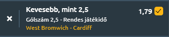 Tipp: Kevesebb, mint 2,5 gól a mérkőzésen