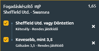 Ezek az ötletek kiválóan alkalmasak arra, hogy egy kétmeccses duplázóban az egyik tagot adják. Az odds alacsonyabb, viszont ezzel párhuzamosan a kockázat mértéke is csökken. Két hasonló minőséget képviselő Championship-alakulat csap össze egymással: a Sheffield United a Swansea Cityt fogadja a Bramall Lane-en.