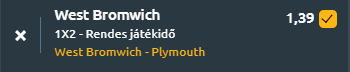 - A Plymouth Argyle gyengécskén kezdte a szezont Wayne Rooney irányítása alatt, ám meglepetést okoztak, amikor 3-2-re legyőzték a 100%-os Sunderlandet, megszerezve ezzel első győzelmüket. Bár a három góljukból kettő öngól és büntető volt, a második félidőben mutatott eredményes játékért abszolút dicséret illeti a csapatot. Korábban a Plymouth hat félidőn át nem talált be az ellenfelek kapujába, így kérdés, hogy Rooney változtat-e a kezdőcsapaton. Ryan Hardie pályázik a kezdőbe jutásra Michael Obafemi helyett. Rami Al Hajj is lehetőségként áll a csapat rendelkezésére, de várhatóan ő is csak a kispadon kap helyet. De a lényeg az, hogy Szűcs Kornéllal meg van elégedve a busafejű menedzser, aki edzőként egyelőre töredékét nem nyújtja annak, amit játékosként tudott. Bár a Plymouth meglepő győzelmet aratott a Sunderland ellen, nehéz elképzelni, hogy ugyanezt megismételnék a West Brom ellen. A West Brom szilárd védekezése és támadóereje sokkal nagyobb minőséget rejt magában, így várhatóan betonbiztos győzelmet aratnak hazai környezetben.