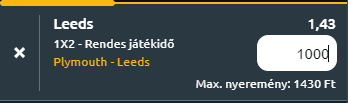 - Mára a Plymouth Argyle - Leeds United ligabajnoki mérkőzést hoztam. A Leeds mindenáron oda akar érni a második helyre a tabellán, ami csont nélküli feljutást eredményez számukra. Ma a Home Parkban kötelező megverni a hazai Plymouth csapatát. Mindkét csapat remek formában van. A vendégek zsinórban hét győzelmet aratott sorozatuknak köszönhetően két ponttal előzik meg a harmadik helyezett Southamptont, míg a házigazdák a hétközi döntetlennel a 15. helyre kapaszkodtak fel. Ian Foster irányításával feljavult a Plymouth játéka és eltávolodtak a kieső zónától, ez volt a cél. Természetesen további győzelmekre lenne szükség, de ma ennek vajmi kevés esélye van, hiszen a Liga egyik legjobb keretével bíró és a legjobb formában lévő együttese érkezik a Leeds személyében, amely ráadásul nagy versenyben van a feljutásért folytatott harcban. A hónap elején már találkoztak ugyanitt az FA Kupában, akkor a Leeds sima 4-1-es győzelmet aratot. Ma is hasonlóra számíthatunk, sima vendégsiker a tipp.