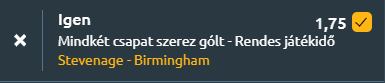 - A Stevenage remek formában érkezik a mérkőzésre, hiszen négy győzelmet aratott zsinórban, ráadásul az EFL Trophyban két meccse gólt sem kapott. A csapat most először juthat be a sorozat elődöntőjébe 2014 óta, és otthon mindenképpen megpróbálja kihasználni a lendületét. Birmingham City azonban még jobb formát mutat, hiszen 10 meccses veretlenségi szériában van, és az EFL Trophyban idén még nem kapott ki. A vendégek támadójátéka kimagasló, hiszen eddig 15 gólt szereztek a sorozatban, átlagosan hármat meccsenként. A Birmingham egyértelműen a favorit a kétosztálynyi különbség és a kiváló formája miatt, de a Stevenage hazai pályán képes lehet megszorítani őket és betalálni. Így egy gólgazdag mérkőzésre lehet számítani, ahol mindkét fél betalál majd.