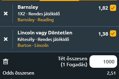 - Barnsley – Reading: A hazai oldalon Barnsley szurkolói még nem lehetnek teljesen meggyőződve Conor Hourihane irányításáról, főleg a kapott gólok számát látva, azonban a legutóbbi, Huddersfield Town elleni 3–1-es győzelem óriási lökést adott a csapatnak. A gárda eddig 13 pontot gyűjtött hat bajnokin, egyedül az AFC Wimbledon ellen maradtak gólképtelenek augusztus 23-án. A Barnsley így mindössze három ponttal van lemaradva a második helyezett Doncaster Rovers mögött, ráadásul egy mérkőzéssel kevesebbet játszott, miközben hazai pályán már hét pontot szerzett három meccsből. A Reading ugyanakkor kisebb javulást mutatott az elmúlt hetekben, hiszen három bajnokin veretlen maradt, és öt pontot szerzett a Bolton Wanderers, a Wycombe Wanderers és a Port Vale ellen. Ez a sorozat azonban csak annyit ért, hogy továbbra is a huszadik helyen tanyáznak, noha Noel Hunt edző mindenképpen bizakodhat a formálódó csapatképen. Ugyanakkor az EFL Trophyban 3–2-es vereséget szenvedtek a Swindon Town otthonában, ami arra utal, hogy még mindig messze vannak a kiegyensúlyozott teljesítménytől. A Barnsley lendülete és hazai pályás formája alapján egyértelműen a hazaiak számítanak az esélyesnek. A Huddersfield elleni győzelem önbizalmat adott, Keillor-Dunn vezérletével pedig támadásban is erősek. Hazai győzelem várható.