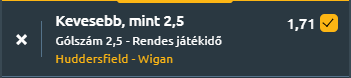- A Huddersfield hazai fölényét ellensúlyozza a Wigan kiváló védekezése! De a Wigan támadójátéka azonban nem elég hatékony, hogy veszélyt jelentsen a hazaiakra, és az idegenbeli gyenge teljesítményük szintén hátrány. Ennek megfelelően a döntetlen teljesen megfelelő lenne a vendéggárdának, így az szigorú védekező felfogással lép ma pályára. Kevés gólt várhatunk a meccsen!