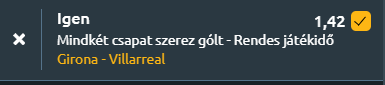 - A Villarreal jól szerepel idegenben, de a Girona túl nehéz ellenfél lesz ma, azért egy gólra jók lesznek a vendégek is, a hazaiak pedig várhatóan ennél többet szereznek majd.