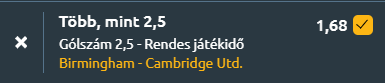 - A Birmingham City egyértelmű esélyesként lép pályára a sereghajtó Cambridge United ellen, hiszen a tabella élén áll, míg ellenfele a kiesés ellen küzd. A hazaiak nyáron komoly erősítéseket hajtottak végre, és eddig be is váltották az elvárásokat, hiszen 19 győzelmükkel és mindössze két vereségükkel vezetik a bajnokságot, ráadásul kevesebb meccset is játszottak. Az FA Kupában vereséget szenvedtek a Newcastle ellen, de a pályán mutatott teljesítmény erőt adhat számukra. Ezzel szemben a Cambridge United kifejezetten gyenge, hiszen 24. helyen áll és hét ponttal van lemaradva a vörös vonaltól. Az elmúlt hetekben ugyan volt némi javulás az eredményeikben, de továbbra is győzelmekre van szükségük a kiesés elkerüléséhez. Összességében a Birmingham City magabiztos és több gólos győzelme várható, mivel a két csapat között jelentős a különbség mind formában, mind játékerejükben. Minimum három gólt várhatunk.