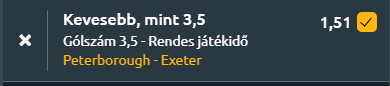 - A Peterborough mindössze két győzelmet aratott az utóbbi 12 bajnoki mérkőzésükön, legutóbbi eredményük pedig egy gól nélküli döntetlen volt a Leyton Orient ellen. Bár a Walsall elleni 4-2-es győzelem az EFL Trophyban pozitívumként említhető, ez inkább kivétel, mint tendencia. Exeter City sincs jobb helyzetben, mivel négy mérkőzés óta nyeretlen a bajnokságban, ebből háromszor vereséget szenvedtek, és legutóbb egy szoros, 1-0-s vereséget könyvelhettek el a Birmingham ellen. A Peterborough védelme az utóbbi időben javult, míg az Exeter idegenbeli teljesítménye gyenge, hiszen legutóbbi két idegenbeli mérkőzésüket elvesztették. Mindkét csapat formája és támadójátéka kifejezetten gyenge az elmúlt időszakban, egy szoros és küzdelmes meccs várható maximum három góllal!