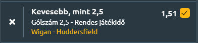 - A Wigan Athletic hazai pályán próbálna javítani ötmérkőzéses nyeretlenségi sorozatában, miközben továbbra is gyenge otthon és a liga egyik legrosszabb támadójátékával rendelkezik! Bár a hétvégi gól nélküli döntetlen a második helyezett Wycombe Wanderers ellen pozitív eredménynek számít, a csapat még mindig csak négy ponttal van a kiesőzóna felett, így nagy szüksége lenne a győzelemre. A vendég Huddersfield Town ezzel szemben a feljutásért küzd, és bár egy ötmérkőzéses nyeretlenségi szériával nehezítették saját dolgukat, a Barnsley és a Shrewsbury elleni idegenbeli győzelmekkel sikerült új lendületet venniük. A Peterborough elleni hétvégi vereség ugyan visszavetette őket, de továbbra is az első hat helyezett között állnak, és fontos lenne számukra, hogy stabilizálják pozíciójukat a rájátszásért folytatott harcban. Mivel a Wigan hazai pályán kifejezetten gyenge, a Huddersfield számára ez jó esély lehet a győzelemre! Tudják ezt a hazaiak is és egy nagyon masszív védekezéssel készülnek majd, amit ugyan bedarál majd a vendéggárda és egy szoros meccsen várhatóan begyűjtik a három pontot. Viszont nem lesz sok gól!