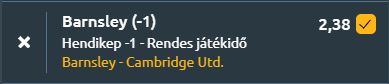 Tipp: Barnsley-győzelem 0-1 hendikepről
