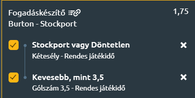 Egy Single Value Tipp következik, vagyis a sportfogadásban egy olyan értékelhető szorzó, amely single játékba küldés esetén is értéket hordoz magában! Fontos összecsapást rendeznek ma a Liga 1-ben, ahol a kiesés elől menekülő Burton Albion a playoff-helyekért hajtó Stockport County együttesét fogadja.