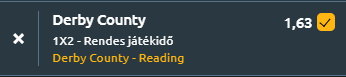 Egy Single Value Tipp következik, vagyis a sportfogadásban egy olyan értékelhető szorzó, amely single játékba küldés esetén is értéket hordoz magában! A Derby County megpróbálja megszerezni zsinórban harmadik győzelmét, amikor kedden a Readinget fogadja a Pride Parkban a League One keddi mérkőzésén.
