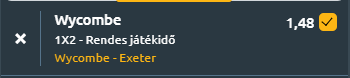 Ezek az ötletek kiválóan alkalmasak arra, hogy egy kétmeccses duplázóban az egyik tagot adják. Az odds alacsonyabb, viszont ezzel párhuzamosan a kockázat mértéke is csökken. A harmadik helyezett Wycombe Wanderers hazai pályán fogadja a középmezőnyben elhelyezkedő Exeter Cityt a League One mai fordulójában.