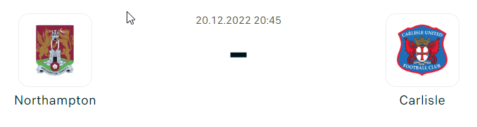 - A Northampton Town nem csak jobb formában van, hanem pihentebb is, mivel a múlt heti, Harrogate Town elleni mérkőzést a pálya fagyása miatt elhalasztották. Mindezeken túl nincsenek sérültek, a legjobb csapat fog kifutni a pályára a Carlisle ellen! A Carlisle pedig az utóbbi időben, dacára a veretlenségnek, nincs a legjobb formában és ezt a szakvezető is elismerte.