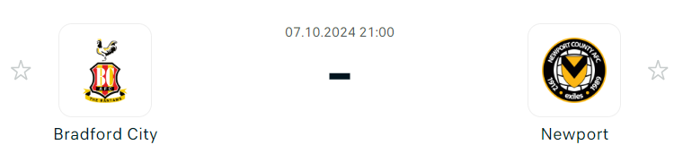 - A Bradford jól kezdte a szezont, de most egy ideje nincs jó formában. Az elmúlt négy meccsen két döntetlent és két vereséget könyvelhettek el, míg az EFL Trophy-ban sikerült legyőzniük a Mansfield Townt. Jelenleg 13. helyen állnak kilenc forduló után. A gárda azonban hazai pályán stabilabb, hiszen még nem veszítettek meccset a szezonban, négy mérkőzésből nyolc pontot gyűjtöttek össze a Valley Parade stadionban. A tavalyi szezon végéig visszanyúlóan hét hazai mérkőzésük óta veretlenek, amelyek közül ötöt megnyertek – ez az elmúlt év legjobb sorozatuk. Nem véletlenül reménykednek abban, hogy ma legyőzik a Newportot és nagyon fontos három pontra tesznek szert, hiszen a Bradford tavaly kétszer is legyőzte a Newport Countyt 4-1-re. A legutóbbi találkozón Calum Kavanagh nyitotta a gólok sorát, amit Andy Cook, Bobby Pointon és Jamie Walker követett, ezzel megerősítve Bradford dominanciáját. Az utóbbi hat ligameccsen Newport nem tudta legyőzni őket, és kilenc idegenbeli találkozóból mindössze egy győzelmet aratott. Alex Pattison és Antoni Sarcevic sérült, míg Joe Adams az egész szezonra kiesett és Aden Baldwin sem elérhető még. Neill Byrne talán visszatérhet a mai meccsen.