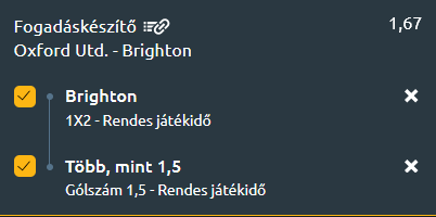 - A Liga-kupára mindkét menedzser biztosan belenyúl majd alapcsapatába - ez az érzésünk, hogy a Brighton tartalékos összetételben is nyer, ráadásul a szerencse is melléjük állhat, így jöhetnek a gólok is!