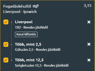 - A Liverpool egyértelmű esélyesként várja a találkozót, és minden jel arra utal, hogy könnyedén megszerezhetik a három pontot. Az Ipswich védekezésbeli problémái, valamint a Liverpool támadóinak formája alapján valószínű, hogy a hazaiak nagyarányú győzelmet aratnak és támadásaik állandósulnak majd a mérkőzés folyamán. A tippem ezen gondolatoknak a gyümölcse: A Liverpool nyer, több mint 2,5 gól- és több mint 12,5 szöglet lesz a mérkőzésen