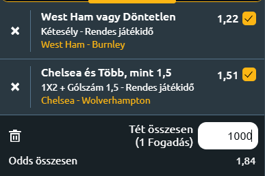 - Chelsea - Wolverhampton Wanderers: A londoniak egy hosszú, csaknem 3000 mérföldes azerbajdzsáni kirándulás után térnek vissza a bajnokságba, miután a Qarabag elleni 2–2-es döntetlent lejátszották. Enzo Maresca együttese a Premier League-ben is hullámzó formát mutat, legutóbbi hat bajnokijából hármat megnyert és hármat elveszített, de a Tottenham elleni 1–0-s győzelem visszaadta az önbizalmat. A Chelsea ezzel három győzelmet szerzett az elmúlt négy fordulóban, és jobb gólkülönbségének köszönhetően a hetedik helyen áll. A Wolverhampton kifejezetten gyenge szezont fut, el is küldték az edzőt legutóbb. A Wolves négy tétmeccses vereségsorozatban van, három egymást követő bajnokit is elveszített, és továbbra is nyeretlen a Premier League-ben. A csapat nyolc ponttal van lemaradva a bennmaradást érő helyektől, és biztosan sereghajtóként tölti az előttük álló válogatott szünetet. Mindenképpen a Chelsea az esélyesebb, a hazai csapat megszerzi negyedik győzelmét az utóbbi öt bajnokin.
