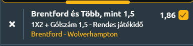 - A hazai pálya előnye és a Wolves idegenbeli gyengélkedése alapján a Brentford esélyesebb a győzelemre, de a Wolves nagyon motivált lesz, így a góljuk simán benne van a meccsben. A Brentford támadási hatékonysága képes két gólra, így a hazai győzelem mellett a legalább két gól is beköthető!