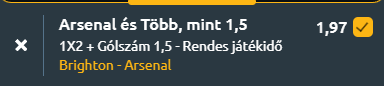 - A Brighton feltámadása biztató, ám a védelem továbbra is sebezhető, hiszen az utóbbi tíz tétmeccséből csak egyet hozott le kapott gól nélkül. Az Arsenal minőségi fölénye győzelmet eredményez majd, de legalább két gól várható a meccsen.