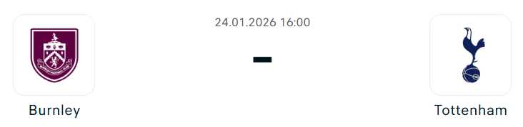- A Burnley október vége óta nem nyert bajnoki mérkőzést, legutóbbi 13 Premier League-találkozóján négy döntetlen és kilenc vereség a mérlege, így továbbra is a 19. helyen áll, nyolc pontra a bennmaradást jelentő pozíciótól. Az utóbbi hetekben ugyanakkor mutatkoztak javulás jelei: az FA Kupában 5–1-re legyőzte a Millwallt, a bajnokságban pedig döntetlent játszott a Manchester Uniteddel és a Liverpoollal, utóbbi ellen az Anfielden szerzett pontot. Hazai pályán a Burnley a liga egyik legkevesebb gólt szerző csapata, és a Tottenham ellen is kedvezőtlen a közelmúltbeli mérlege, hiszen az utóbbi hét bajnokiból hatot elveszített. A Burnleyből Josh Cullen hiányzik, de a többiek készen állnak a mérkőzésre !