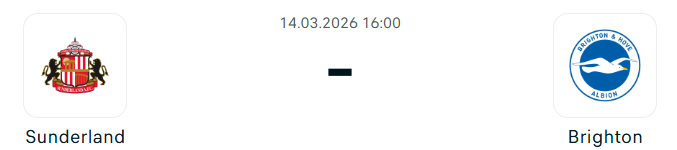 - A két középcsapat formája ingadozó, ezért ismét szoros mérkőzés körvonalazódik. A hazai pálya a Sunderland felé billentheti a mérleg nyelvét, így várhatóan nem kapnak ki ma, hazai pályán és lesz minimum két gól a meccsen! Stefanos Tzimas és Adam Webster sérült, Kaoru Mitoma, Lewis Dunk és Solly March játéka kérdéses.