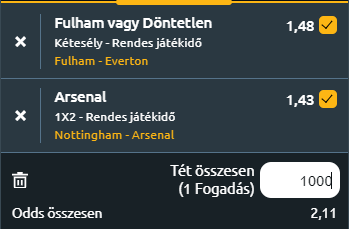 Az Notthingham-Arsenalon a gól - gól közel kettes szorzó.