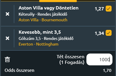 - Everton – Nottingham: Ez egy kőkemény kiesési rangadó a Premier Ligában! Az Everton 27 ponttal a 16. helyen áll a tabellán, és mindössze két ponttal vannak a kiesőzóna felett, egy meccsel kevesebbet játszva. Az Everton az elmúlt négy hónapban borzalmasan teljesített. December közepe óta mindössze egy meccset nyertek, azt is a Burnley ellen. Az elmúlt 15 meccsükön egy győzelem és nyolc vereség a mérlegük. Az Everton legutóbbi kilenc mérkőzéséből hat 2,5 gól alatt végződött. A gárda szerencséje az, hogy a kieső zóna többi csapata is szenved, ezrét még mindig van esélyük bent maradni. A Forest is gyenge formában van, az elmúlt nyolc meccsből egy győzelemmel, és csak a Luton és a Sheffield szerzett kevesebb pontot az elmúlt nyolc meccsen. A tabellán 26 ponttal a 17. helyen állnak, és mindössze egy ponttal vannak a kieső zóna felett. Katasztrofális lenne, ha kiesnének a Championshipbe. A Nottinghamnek öt meccse van a végéig, és három közvetlen riválisok ellen. Az Everton, a Burnley és a Sheffield ellen játszanak, de mindhárom meccsük idegenben lesz. Az utolsó öt mérkőzésük BTTS-sel zárult. Mivel mindkét csapatnak nagyon kellene a győzelem, nem várok fejetlen egymásnak esést. Óvatos, de harcos mérkőzésen dől ma el a meccs, de nem várható sok gól, maximum három.