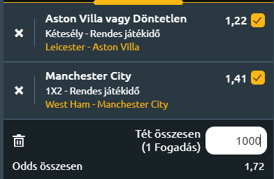 - Leicester City – Aston Villa: A Leicester City nem tudta folytatni a Tottenham Hotspur elleni döntetlennel megszerzett remek eredményt, és a múlt hétvégén 2-1-es vereséget szenvedtek a Fulham otthonában. Wout Faes egyenlítő gólt szerzett, de Alex Iwobi találata után Leicester nem tudott újra egyenlíteni. Az EFL Kupában azonban Leicester 4-0-s győzelemmel jutott tovább a Tranmere Rovers ellen, ami Steve Cooper első győzelme volt a csapat élén. Az Aston Villa vereséget szenvedett az Arsenal ellen, és Unai Emery szerint még bőven van munka a csapat fejlődésében. Szombaton várhatóan sok gól születik, de a Leicester és Aston Villa találkozóján az alapvető és komoly minőségi különbségek miatt az utóbbi esélyesebb a győzelemre. X2