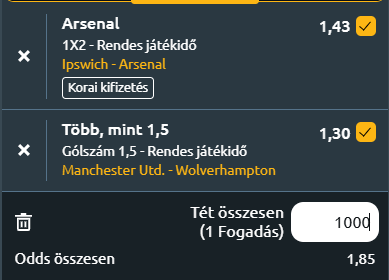 - Manchester United - Wolverhampton Wanderers: A Manchester United hatalmas Európa-ligás fordítása után, amely során hat perc alatt három gólt szerezve fordított a Lyon ellen, ismét önbizalomtól duzzadva léphet pályára, ám a Premier League-szereplésük borzalmasan gyenge, a klub történetének leggyengébb élvonalbeli szezonját futják, jelenleg csupán a 14. helyen állnak. Ruben Amorim edző már jelezte, hogy az európai siker prioritást élvez, így elképzelhető, hogy a bajnokin több fiatal játékos is lehetőséget kap, hogy pihentetni tudják a kulcsembereket. Ennek ellenére a Unitednek szüksége van a győzelemre, hiszen egy esetleges újabb vereséggel akár a 17. helyre is visszacsúszhatnak, és bár matematikailag a kiesés nem reális, a szurkolói hangulatnak jót tenne egy bajnoki győzelem. Ezt azonban nem lesz egyszerű kiharcolni a lendületben lévő Wolverhampton ellen, amely legutóbbi öt bajnokijából négyet megnyert, köztük egy látványos 4–2-es sikert a Tottenham otthonában. A Farkasok idegenben kifejezetten jól érzik magukat, az utóbbi hat vendégfellépésükből ötön nem kaptak ki rendes játékidőben. Összességében, ha a United tartalékosan áll ki, és a vendégek hozzák a mostani formájukat, akkor könnyen borulhat a papírforma. Mivel mindkét csapat formája és motivációja a nyílt, támadó futballt vetíti előre és minimum két gól várható a találkozón!