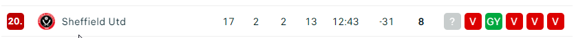 - A Sheffield United menedzsert váltott, és egy kicsit javított az eredményeken és a teljesítményen. Chris Wilderrel az első három meccsen két vereséget szenvedtek, de ezek a vereségek a Chelsea és a Liverpool ellen születtek. Senki sem várja el, hogy a Sheffield pontokat szerezzen ezek ellen a csapatok ellen. Megverték a Brentfordot, a következő hetekben pedig kétszer a Luton, kétszer a Palace és a West Ham ellen játszanak otthon. Wilderéknek nem könnyű a rajt: Liverpool, Chelsea, Aston Villa és Man City az első hat meccsen. Három idegenben. A Sheffield idegenben borzasztóan rossz. Nyolc meccsen hét vereséget szenvedtek, mindössze egy pontot szereztek. Huszonkét gólt kaptak és csak négyet lőttek. Egy kivételével minden idegenbeli meccsen kettő vagy több gólt kaptak. A Sheffield a legrosszabb támadó (12) és a legrosszabb védő (47) csapata a bajnokságban.