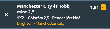 - Gólok várhatóak, hiszen a két klub legutóbbi 10 Premier League-találkozójából nyolcszor legalább háromszor megzörrent a háló, de a City jobb mérleggel büszkélkedhet, és még ha Haaland hiánya sem jelent hátrányt. Mindezeken túl a Brighton is támadó stílusban focizik De Zerbi vezetésével és ma a totális esélytelenség nyugalmával meccselhetnek! A vendégsiker mellett legalább három gólt várhatunk.