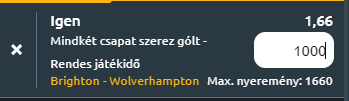 Talán a legnagyobb keresési találatot a sportfogadás témában a „Bet of the day” kulcsmondatra kapunk az interneten, vagyis a sportfogadást kedvelő olvasók arra kíváncsiak, mi lehet a nap tippje? Ezt a tippet keressük, amelyben van érték, érdemes single játékba küldeni. A Wolverhampton zsinórban negyedik győzelmét szeretné megszerezni a Premier League-ben, amikor hétfőn Brightonba utazik a 21. forduló zárásaként.