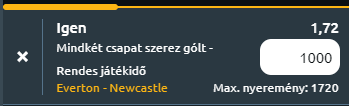 Talán a legnagyobb keresési találatot a sportfogadás témában a „Bet of the day” kulcsmondatra kapunk az interneten, vagyis a sportfogadást kedvelő olvasók arra kíváncsiak, mi lehet a nap tippje? Ezt a tippet keressük, amelyben van érték, érdemes single játékba küldeni. Az angol Premier League 15. fordulójában az Everton a Newcastle-lel találkozik. Az előző fordulóban mindkét csapat diadalmaskodott. A hazaiak a Nottingham Forestet, a vendégek pedig a Manchester Unitedet győzték le.