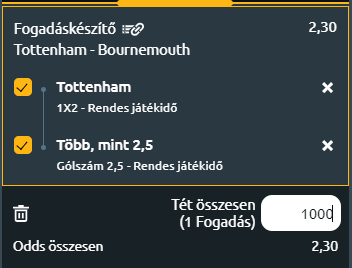 Talán a legnagyobb keresési találatot a sportfogadás témában a „Bet of the day” kulcsmondatra kapunk az interneten, vagyis a sportfogadást kedvelő olvasók arra kíváncsiak, mi lehet a nap tippje? Ezt a tippet keressük, amelyben van érték, érdemes single játékba küldeni. Az angol Premier League utolsó 2023-as mérkőzésén a Tottenham hazai pályán fogadja a Bournemouth csapatát. A múltkori brightoni verés után alighanem erős győzelmi kényszerben lesz a hazai csapat.