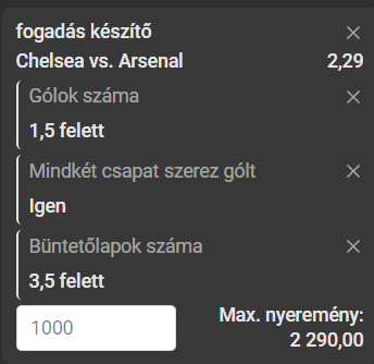 - Az Arsenal remek idegenbeli védekezési rekordja megszakadhat az újjáéledt Chelsea ellen, mindkét oldalról várható gól, amiből legalább kettő lesz majd. Mivel ez egy vérbeli derbi, a büntetőlapok is röpködni fognak ma! A tipp hármas egység: