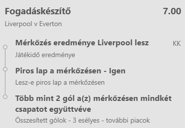 Tipp: Liverpool nyer & over 2 gól a mérkőzésen & lesz piros lap a mérkőzésen