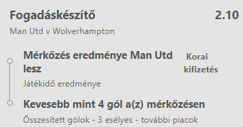 Ez a rovatom a Fogadáskészítő segítségével készült el. Az adott mérkőzést kielemezve 2-3 szempontból összeállított tippet küldök játékba, amelynek szorzója minden esetben a duplázó körüli értéket közelíti, de mégis jó esélyekkel indul! Az indoklást rendhagyó módon távirati jelleggel csinálom. Nincs fölösleges sallang, csak a sziklaszilárd tények. A második tippem: ManU – Wolves