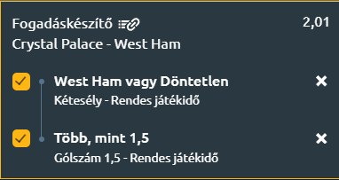 - A Premier League előző kiírásában ebben a párosításban 2-0-ra nyert a West Ham, ám erre a Crystal Palace ugyanilyen arányú győzelemmel válaszolt a London Stadionban.