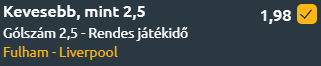 A legutóbbi 6 egymás ellenin 1 Fulham-siker, 2 döntetlen, 3 Liverpool-siker született, 4,167 gólátlaggal, minden meccsen szerzett gólt mindkét csapat. Ezek alapján érdemes sok gólos mérkőzésre fogadni, de szerintünk a Liverpool jelenlegi tendenciái és Slot törekvése a védekezés stabilitására kevés gólos mérkőzést fog eredményezni.