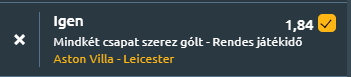 - Az Aston Villa legutóbbi mérkőzésén 2-2-es döntetlent játszott a Brighton ellen egy változatos mérkőzésen. Bár az utolsó négy bajnokijukból csak egyet nyertek meg, Unai Emery csapata továbbra is versenyben van a Bajnokok Ligája-helyekért, hiszen mindössze három ponttal vannak lemaradva az ötödik helyen álló Newcastle United mögött. Hazai pályán kifejezetten erősek, hiszen 10 mérkőzésen 19 pontot gyűjtöttek, és csak Liverpool, Brentford és Arsenal teljesített náluk jobban otthon. A Villa jelenleg kilencmeccses veretlenségi sorozatban van hazai pályán, egyetlen hazai vereségüket augusztusban szenvedték el az Arsenal ellen. Ez az eredménysor ma is pozitív előrejelzésekre ad okot és minimum gólt várhatunk a Villától. A Leicester City nehéz helyzetben van, hiszen Ruud van Nistelrooy irányításával csak egy győzelmet arattak az utóbbi öt mérkőzésükön. Legutóbb a Manchester City ellen kaptak ki 2-0-ra, és jelenleg négymeccses vereségsorozatban szenvednek a Premier League-ben. A csapat a 19. helyen áll, két ponttal lemaradva a kiesést jelentő vonal felett. Idegenbeli teljesítményük kifejezetten gyenge, kilenc mérkőzésükből csak egyet nyertek meg, és csak Brentford és Southampton szerepelt náluk rosszabbul idegenben. Van Nistelrooy támadó stílusa és Jamie Vardy gólszerzési képességei azonban gólt eredményezhet! A gólváltás mellett a hazai győzelemre is komoly esély mutatkozik.
