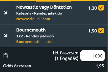 A világ legjobb bajnokságában rendeznek ma fordulót. Két olyan meccset pakoltam össze, amelynek eredő szorzója, mind a kockázat-, mind a szorzó aspektusából nézve kielégítőnek tűnik! A helyszínek Newcastle és Bournemouth.