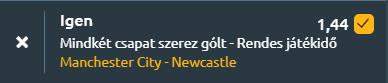 - Reméljük Sergio Agüero heréi még megvannak, ugyanis az egykori kiváló támadó azt ígérte, ha a Real megveri a Cityt a BL-meccsen, akkor levágja legnemesebb szerveit! Talán ebből megtanulja, hogy nem kell baromságokat beszélni! A City a Real Madrid ellen úgy kapott ki otthon 3-2-re, hogy az utolsó percekben engedték ki a kezükből a vezetést. Ez már az ötödik olyan meccsük volt a szezonban, ahol előnyből veszítettek, ami a korábbi négy idény összesített számaival is megegyezik. A bajnokságban sincsenek jó formában, legutóbbi Premier League-meccsükön 5-1-es vereséget szenvedtek az Arsenaltól, így jelenleg az ötödik helyen állnak, két ponttal lemaradva a negyedik Chelsea mögött. A Newcastle ellen ugyanakkor kiváló hazai mérlegük van, hiszen az elmúlt 15 hazai bajnokijukat megnyerték ellenük! A Newcastle lendületben van, hiszen az utóbbi négy idegenbeli bajnokiját megnyerte, köztük olyan csapatok ellen is, mint a Manchester United, a Tottenham és az Arsenal. Ráadásul az FA-kupában is továbbjutottak, így magabiztosan érkeznek a találkozóra. A Szarkáknak most reális esélyük lehet a pontszerzésre egy formán kívüli, védekezési hibákkal küszködő manchesteri csapat ellen. Mivel a City az elmúlt 32 bajnokiján mindig betalált a Newcastle ellen, gólváltás várható, és egy döntetlen tűnik a legvalószínűbb kimenetelnek.