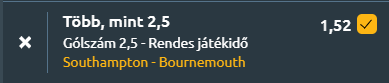 - A Southampton ugyan megszakította hosszú nyeretlenségi sorozatát az Ipswich elleni 2-1-es győzelemmel, de az FA Kupában ismét nagyon gyenge teljesítményt nyújtott, és 1-0-ra kikapott a Burnley-től. Az FA Kupa-kiesés lehetőséget ad számukra, hogy minden erejükkel a Premier League-ben maradásra koncentráljanak, de jelenleg 10 ponttal vannak lemaradva a bennmaradást érő helyektől, és rendkívül gyenge hazai formájuk (1 győzelem, 1 döntetlen, 9 vereség) nem sok optimizmusra ad okot. A Bournemouth ezzel szemben remek formában van, az elmúlt 14 mérkőzéséből mindössze egyet veszített el, és reális esélye van története első európai szereplésére. Idegenben is kiválóan teljesítenek, jelenleg hatmeccses veretlenségi sorozatban vannak a bajnokságban, és idén minden alkalommal nyertek, amikor az aktuális sereghajtóval találkoztak. Külön öröm, hogy ebben a menetelésben egy magyar fiú, Kerkez Milos is aktív részt vállal! A Southampton támadásban mutatott javulása miatt esélyes, hogy betalál, de a Bournemouth sokkal szervezettebb és hatékonyabb csapat, így várhatóan magabiztos győzelmet arat idegenben és a meccsen minimum három találatot láthatunk!
