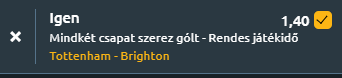 - A Premier League-ben sorozatban ötödik hazai győzelmére készülő Tottenham Hotspur szombat délután a Brighton & Hove Albiont fogadja észak-londoni stadionjában. A Spurs legutóbb kétszer is elszórakozta egygólos előnyét és végül csak egy bosszantó 2-2-es döntetlent tudtak játszani az Evertonnal szemben, pedig Richarlison kétszer is betalált egykori állomáshelyén. A Sirályok pedig alaposan feljavultak és 4-1-es győzelmet arattak a Crystal Palace ellen. Mindkét csapat rengeteg gólt lőtt, mindketten vérbeli támadójátékot játszanak. A Brightonnal volt egy komolyabb hullámvölgye, de a legutóbbi meccsen a régi önmagát idézte a csapat. A Spurs nagyon menni fog, hiszen a cél a BL és nemigen vesztegethetnek el többet úgy pontot, mint tették legutóbb az Everton ellen. A Brightonnak lesz tere az ellentámadásokhoz és be is fog akadni legalább egy. Gólváltós meccs ez!