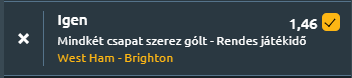 - A Premier League mai fordulójában a 14. helyen álló West Ham United látja vendégül a 9. pozíciót elfoglaló Brightont, ahol egy izgalmas, góldús mérkőzésre van kilátás. Lássuk, miért! Julen Lopetegui csapata az utóbbi időszakban hullámzó teljesítményt nyújt. Bár legutóbbi két bajnokijukon négy pontot szereztek, a Bournemouth ellen csak egy rendkívüli szabadrúgás akadályozta meg őket abban, hogy zsinórban másodszor győzzenek. A csapat jelenleg hétpontos előnyt élvez a kiesőzónával szemben, de a játékuk, bár javul, még mindig hullámzó. Otthon erősek, az elmúlt öt hazai mérkőzésükön tíz pontot szereztek, ami jelentős javulás a korábbi tizenegy mérkőzésük négy pontjához képest. Ami pedig a Brightont illeti, szintén felemás arcot mutat az együttes, jelenleg nincs a legjobb formában. Fabian Hurzeler együttese az elmúlt négy bajnokin mindössze két pontot gyűjtött, és a legutóbbi kilenc tétmérkőzésükből csak kettőt nyertek meg. Azonban támadásban továbbra is veszélyesek! Zsinórban 14 mérkőzésükön szereztek gólt, miközben védekezésük sebezhető maradt. Brighton híres arról, hogy mindkét kaput megtalálja a mérkőzésein, hiszen legutóbbi kilenc összecsapásukon egyaránt lőttek és kaptak is gólt. És ez a végszó és ez a verdikt is a mai tippem kapcsán! Mindkét csapat szerez gólt.