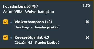 Tipp: Wolverhampton +2 és kevesebb, mint 4,5 gól