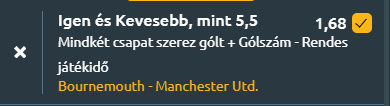 Tipp: Mindkét csapat gól + kevesebb, mint 5,5 gól a mérkőzésen