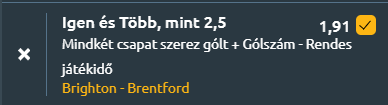- Mire számíthatunk mindezek alapján? Egy szoros, gólgazdag meccs várható, ahol a Brighton hazai ereje és stabilabb formája lehet a döntő tényező, így a hazaiak esélyesebbek a győzelemre, de a gólokra jobban érdemes fogadni. Mindkét oldalon várható találat és minimum három gólt láthat a közönség itt is!
