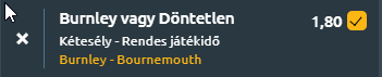 Egy Single Value Tipp következik, vagyis a sportfogadásban egy olyan értékelhető szorzó, amely single játékba küldés esetén is értéket hordoz magában! A Burnley több mint két hónap után az első győzelmét szeretné megszerezni a Premier League-ben, amikor a Bournemouth-t fogadja.