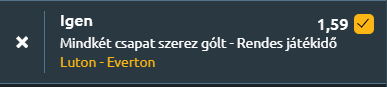 - Mivel az Everton gyenge idegenben, valamint már a bentmaradása biztos, egy kiegyenlített mérkőzés alakulhat ki. A Luton mindent meg fog tenni a győzelemért és ez jó meccset ígér. Mindkét csapat szerez gólt.